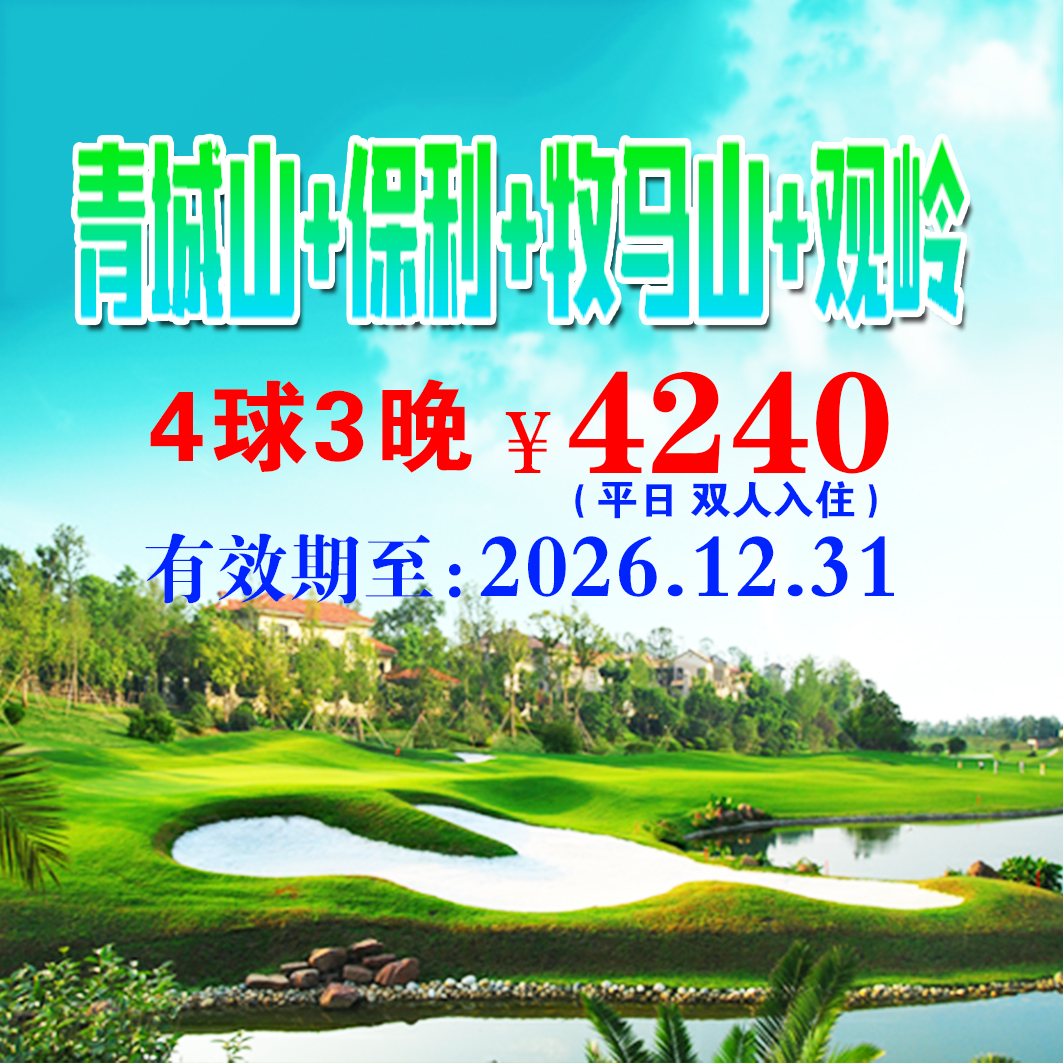 四川青城山+保利+牧马山+观岭4球3晚(双人入住)(平日)